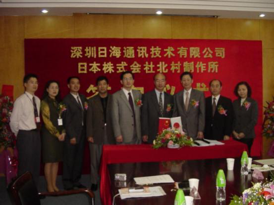 2004年4月13日,公司与日本株式会社北村制作所就户外一体化机房的设计、生产、销售和服务在️333体育公司智能签订了合作协议,共同合资组建深圳北村️333体育公司机房技术有限公司,并举行了隆重的签字仪式。公司周展宏董事长、王文生总裁、杨飞董事、机房事业部负责人孟庆光和日本北村制作所北村泰作董事长、永井正幸常务董事等出席了签字仪式。